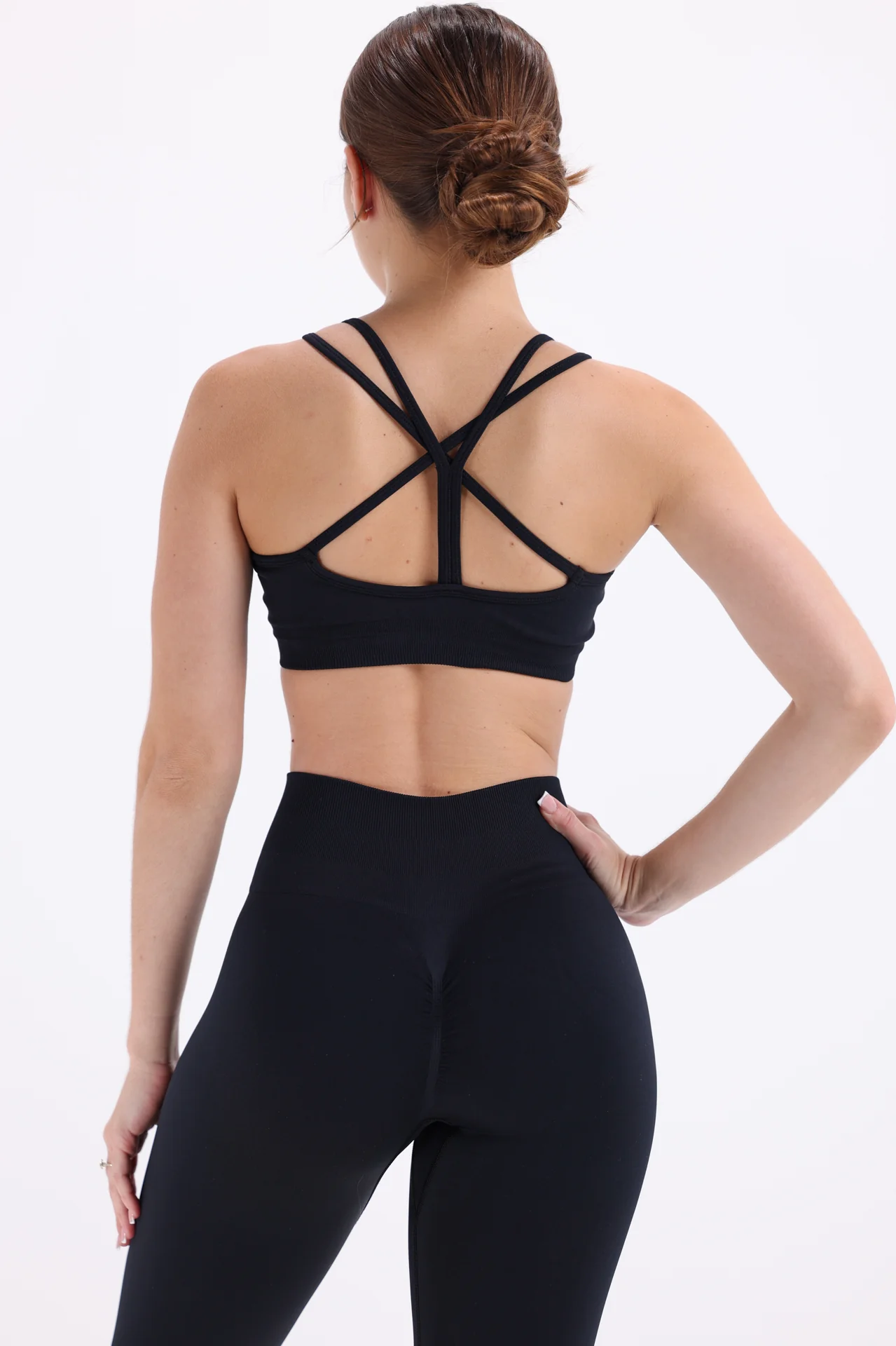 Stretch leggings with a high waist, suitable for спорт and home.